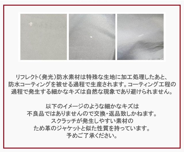 ※ オレンジは防水側がリフレクト素材ではなく、発光機能のない一般的な防水レインコート素材です。