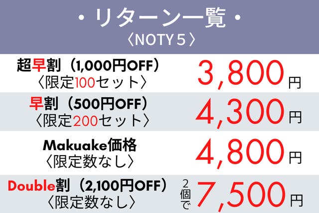 某有名世界的クラウドファンディングサイトで爆発的な売り上げを見せたANVI Originalが贈る「NOTY5.0(ノーティー5)」。
