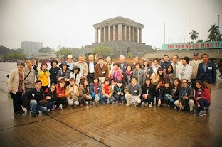 去る3月7日、8日は、日本からの会員が26名、タイ・タマサート大学から11名がベトナム・ハノイの貿易大学を訪問し、貿易大の学生たち20人、3国交流をしました。みんなでハノイのホーチミン廟を観光した時の記念写真です。