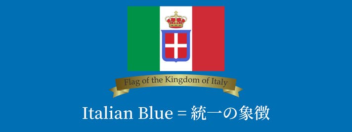 イタリアの色は国旗のトリコロールが代表的ですが、単一では青がシンボルカラー。イタリアはローマ帝国崩壊後、千年近く都市国家が群雄割拠し、1861年遂にサヴォイア家が統一してイタリア王国が誕生。サヴォイア家の紋章のシンボルカラーがアズーロ(空色)でした。