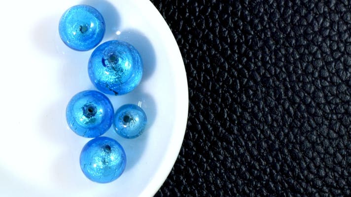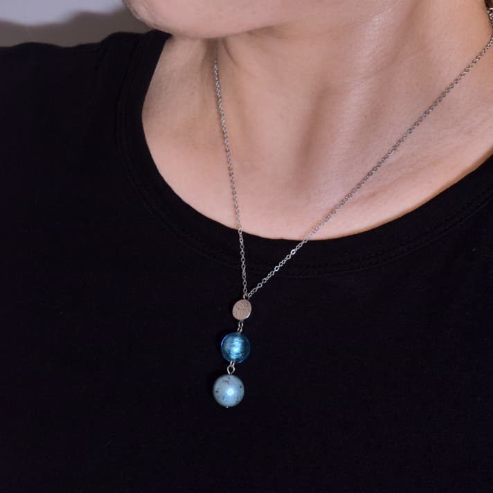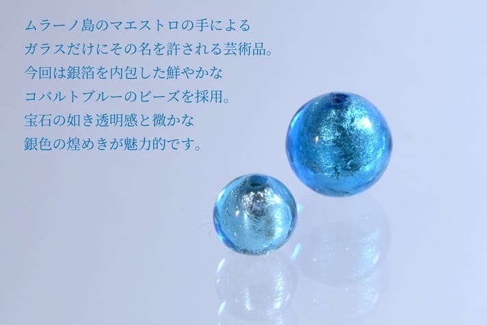 - ムラーノ島で120年の歴史ある老舗工房作、銀箔が煌めくブルーのヴェネチアングラスビーズを使用。