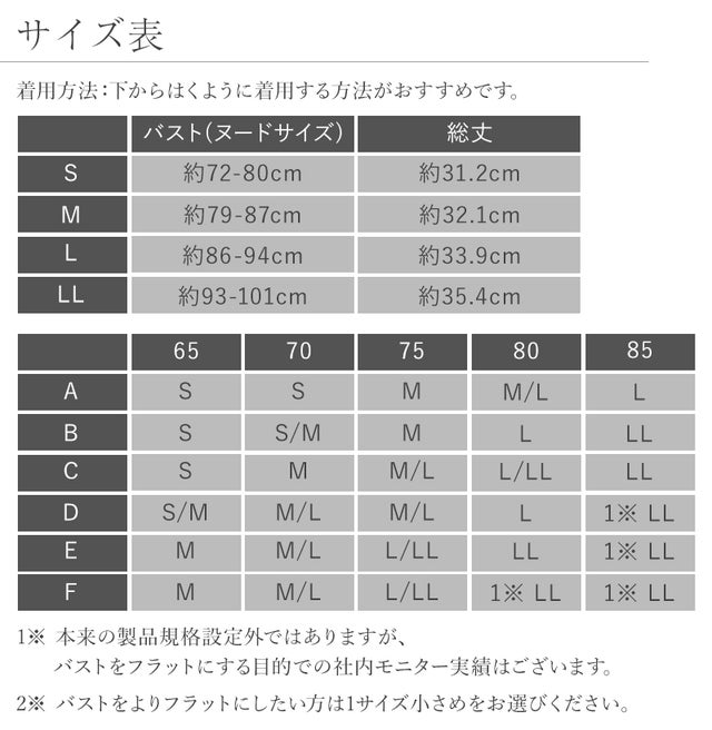 ※バストをよりフラットにしたい方は1サイズ小さめをお選びください。