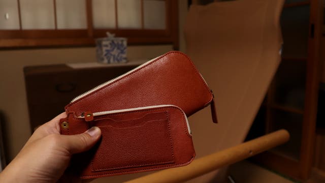 以下は、財布本体とミニ財布を同色革で製作したサンプルです。