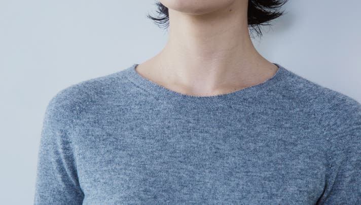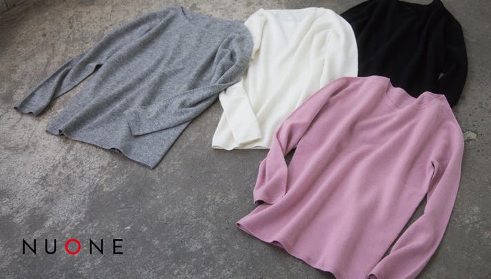 体に沿うよう立体的に編み方を変え、女性が美しく見えるシルエット、なにより着心地の良さを追求し、こだわりを細部まで詰め込みました。素材にもとことんこだわり、肌にもやさしく暖かい天然素材「カシミヤシルク」に行きつき、NUONEの目指したコンセプト「インナー以上アウター未満のニットウェア」ができあがりました。