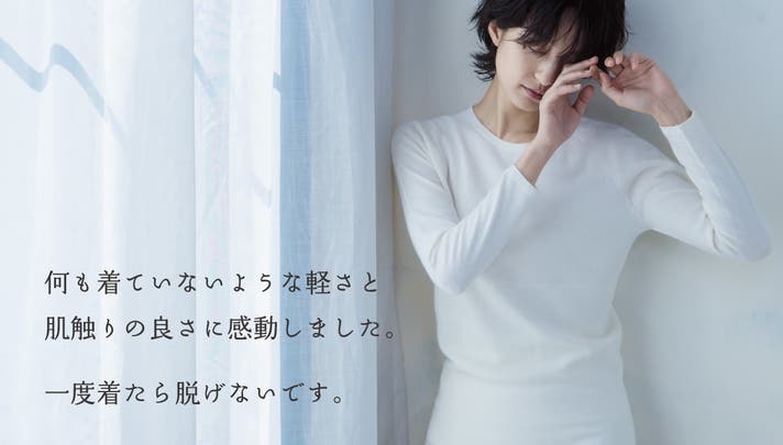 直接素肌に一枚で着て、縫い目のない着心地を体感していただきたい。今まで感じたことのない感動を味わっていただきたい。その一心で商品開発が始まりました。