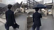 傘を首ではさんで、荷物を口に加えながら右手でドアを開いてみたり。
