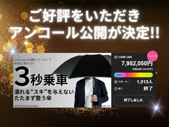 - シリーズ累計3万8,000本。”だれも濡らさない傘”が、閉じるだけで整う傘へ