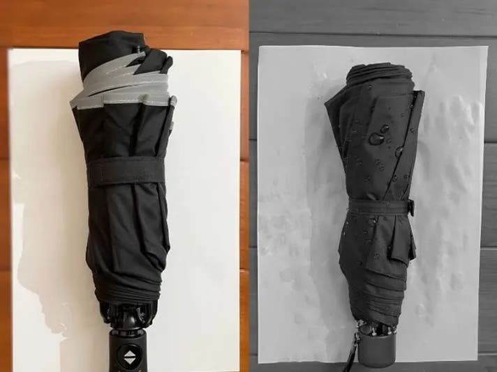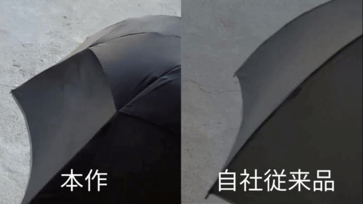 傘の生地には形状記憶加工を施した新素材を採用しました。