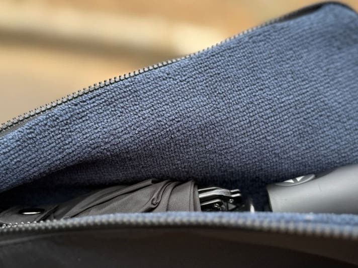 付属の専用傘カバーの内側は吸水マイクロファイバー。