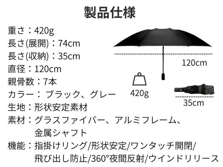 長傘にも負けない超広ワイドな直径120cmサイズ。