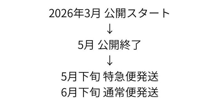 プロジェクト公開後の発送となりますので、特急便が2026年5月、通常便が6月の発送お届けを予定しています。