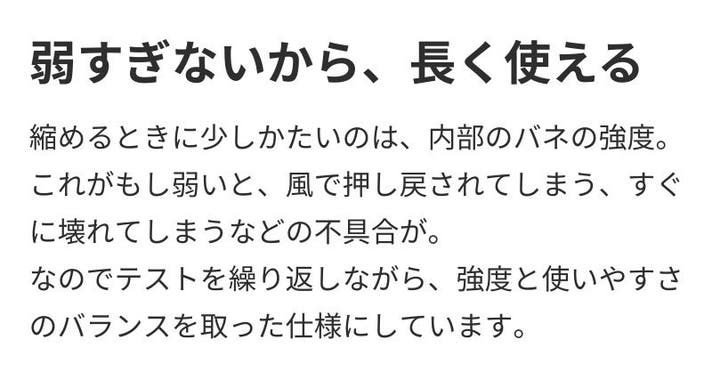強度を維持するために内部に強いバネを使用しているため、縮めるときには多少力が必要です。