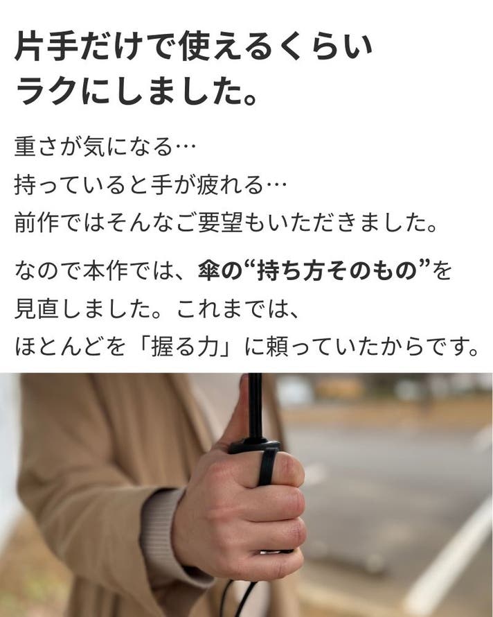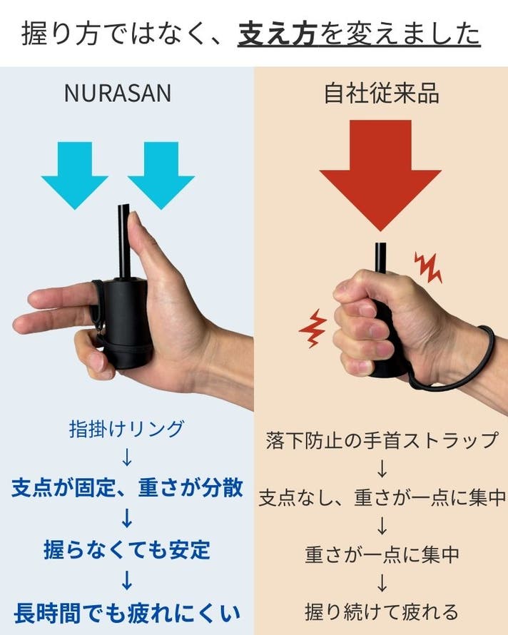 今回は、「握らなくていい」という考え方を取り入れ、持ちやすさを大きく見直しています。