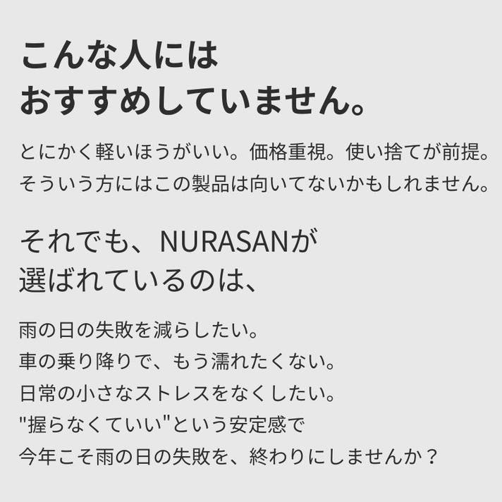 - 【濡らさない】開く・閉じる・たたむ。雨に濡れる“ふとした瞬間”をつくらない