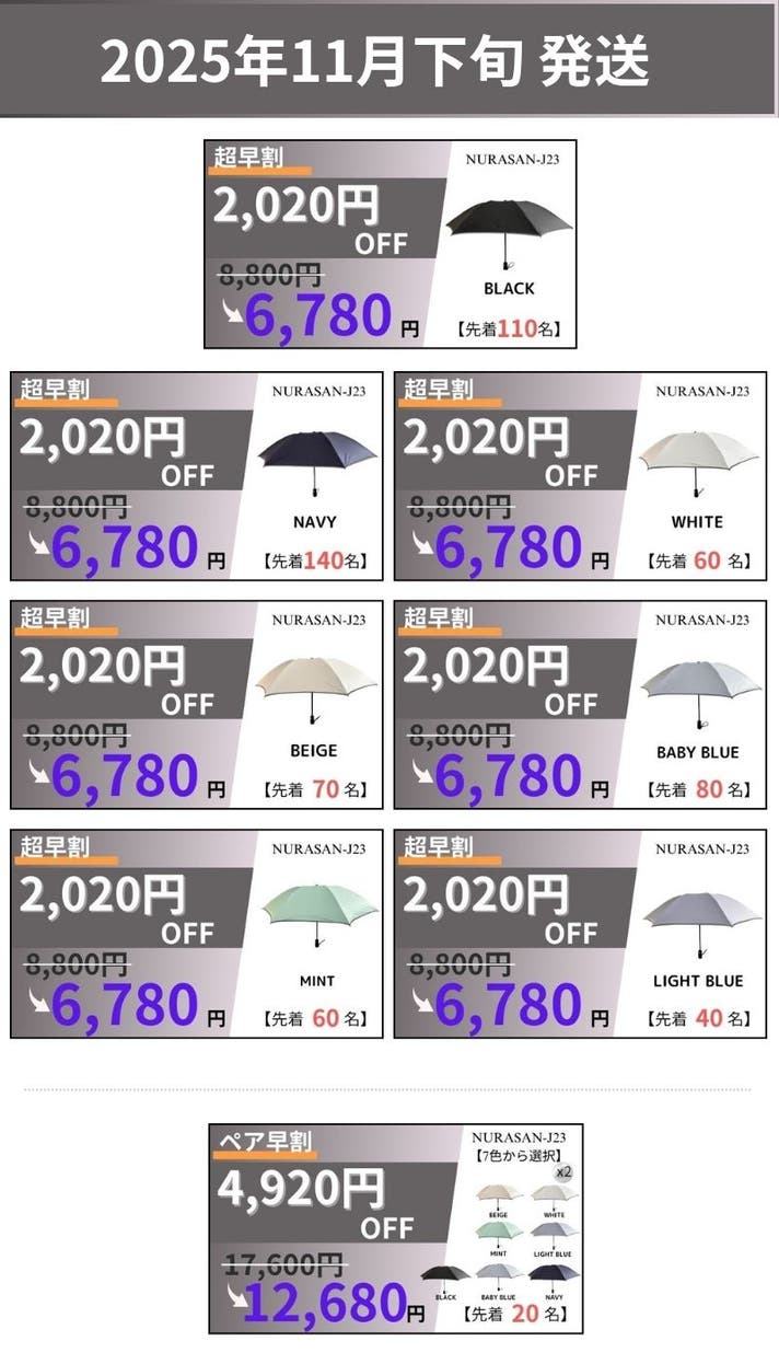 【ペア早割】28%OFF NURASAN-J23_7色から選択×2本