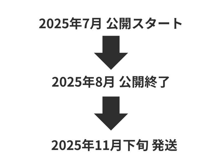 このプロジェクトはAll in型です。目標金額の達成に関わらず、プロジェクト終了日の2025年08月22日までに支払いを完了した時点で購入が成立します。