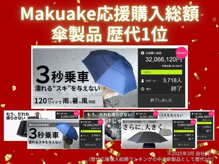 - 累計3万8,000本突破!"だれも濡らさない傘"から、シリーズ最強フルスペック傘がさらに進化!