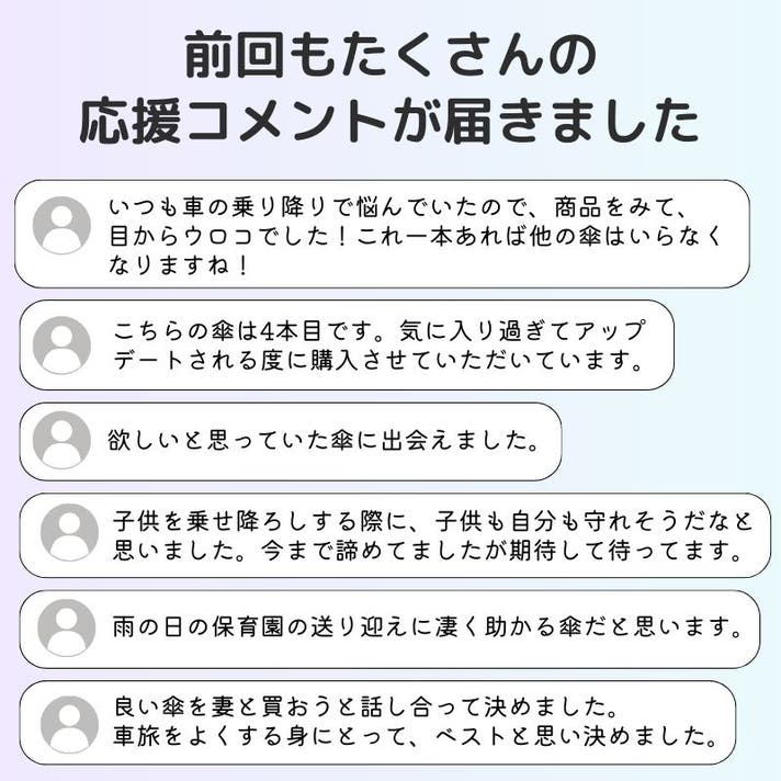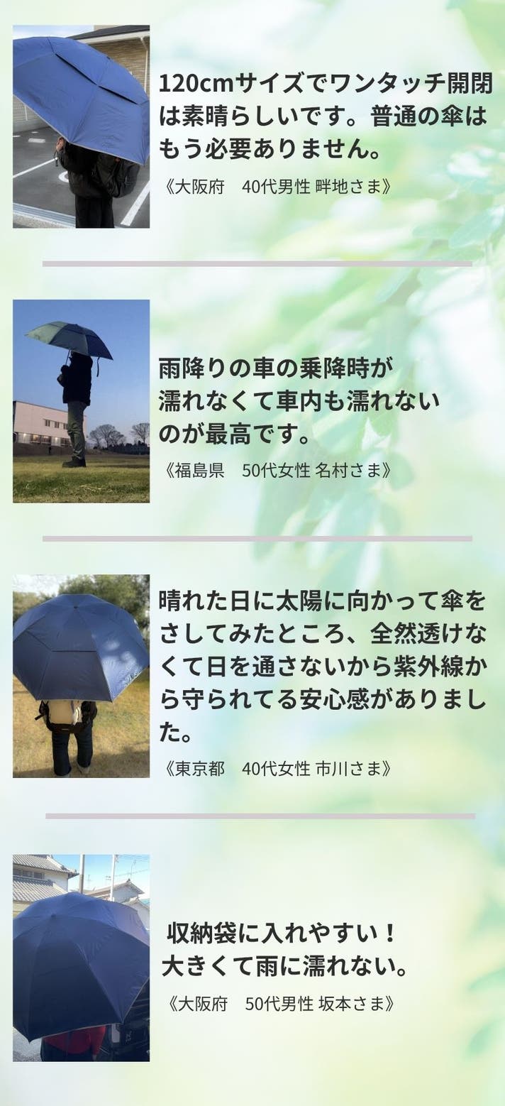 「Makuake(マクアケ)」は、実行者の想いを応援購入によって実現するアタラシイものやサービスのプラットフォームです。このページは、 ファッションカテゴリの 「【3秒乗車】濡れるスキを与えない。雨x暑さx強風に対応したワイド傘で通勤が快適に」プロジェクト詳細ページです。