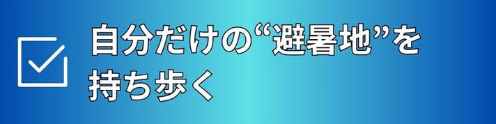 そんな猛暑日には、傘をワンタッチで開いて自分だけの避暑地に。