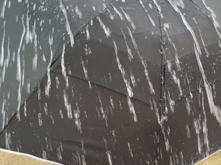 ゲリラ豪雨のような激しい雨の日は、傘にあるわずかなすき間から雨粒が入り込んできます。