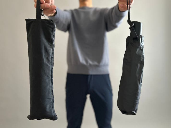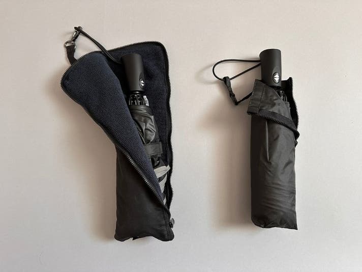 内側のマイクロファイバーが雨粒を吸収するので、使用後もサッとそのままバッグにしまえます。