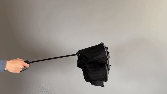 そんなことにならないように、通常の傘とは逆に、雨粒が内側へ折りたたむ構造に。