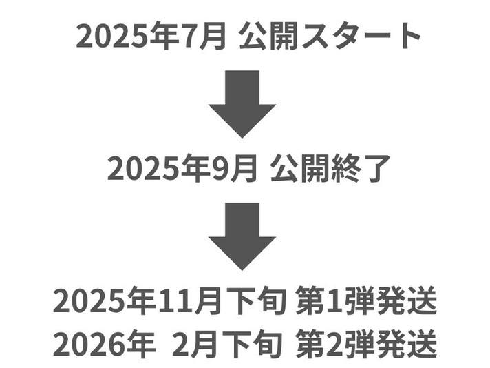 特急便が2025年11月下旬、通常便が12月下旬発送を予定しています。