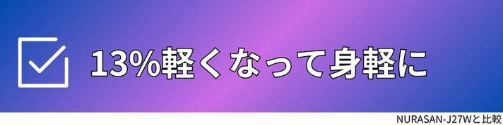 同サイズの従来品(NURASAN-J27W)は約550gで、500mlのお茶とほぼ同じ重さです。