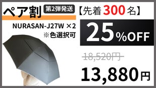 - 累計2万4000本達成「だれも濡らさない傘」が120cmワイドで雨x暑さx強風に対応