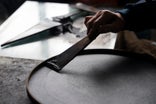輪島市の蔵田木工所にて曲物を専門に作る木地職人。曲物木地職人は、お盆・お弁当箱・御重など、木を曲げる技術を駆使して木地の形を整えます。輪島塗の芯を形作る工程で、木の個性を読み取りながら精密に仕上げています。
