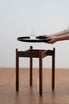 天板のサイズは直径40cm。ソファーの横やベッドサイドでの使いやすさを考え、飲み物や本、小物が無理なく置ける大きさにしています。天板の縁には立ち上がりがついており、持ち運ぶ時にも不安のない設計です。