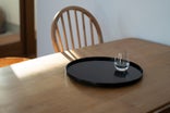 手仕事がつくる柔らかな表情や、光の角度で微妙に変化する奥行きのある質感は漆ならではのもの。お盆として手にとる時には肌触りを楽しむことができ、テーブルとしてお部屋の一部になることで、艶の美しさを日々の生活の中で味わうことができます。