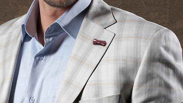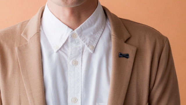 スーツの左胸にあるフラワーホールなどに着けるラペルピン。お洋服の生地のダメージを抑えることが出来るのでおすすめです。