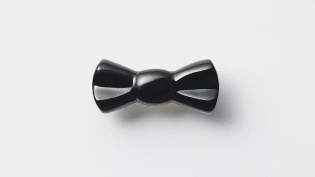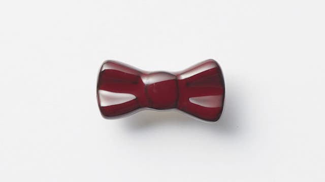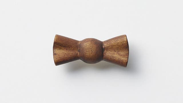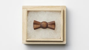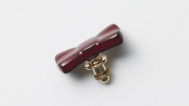 職人の手業が作り出す木彫りに、丁寧に塗り重ねられた漆塗りのリボンラペルピン。温かみのある手仕事が感じられ、宝石にはない柔らかで艶やかな輝き。