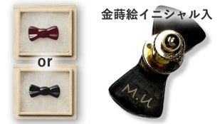 - 加飾オーダーメイド(蒔絵)や名入れ(イニシャル)に対応し、胸元に個性を添えるリボンラペルピン。