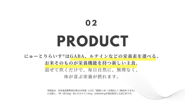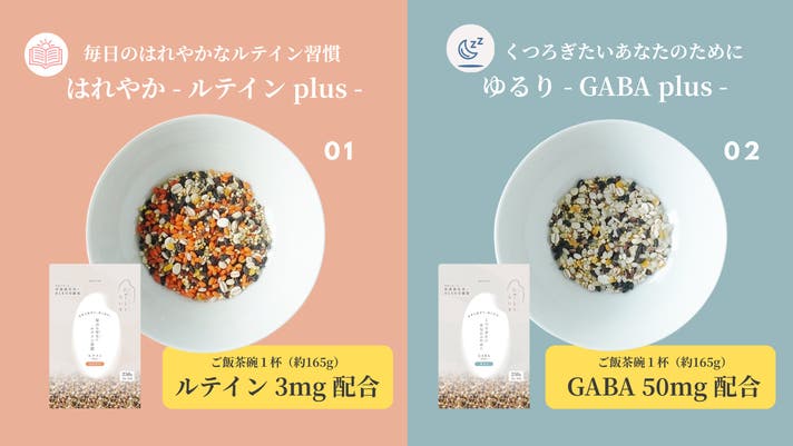 - GABA / ルテインがご飯と一緒に摂取できる!