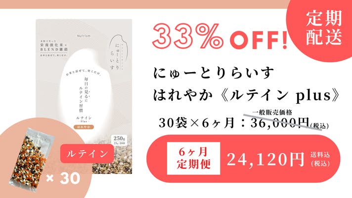 定期便<30袋セット>にゅーとりらいす はれやか《ルテイン plus》×6ヶ月