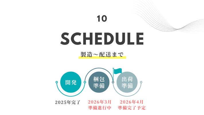 ※製造状況・天候を含む配送状況により、配送予定が多少スケジュールが前後する可能性がございます。予めご了承ください。