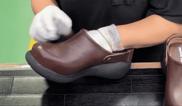 今回のプロジェクトでは、メンズでは初となるNuts worldの代表デザイン「ベーシックサボ」の本革タイプを開発しました。