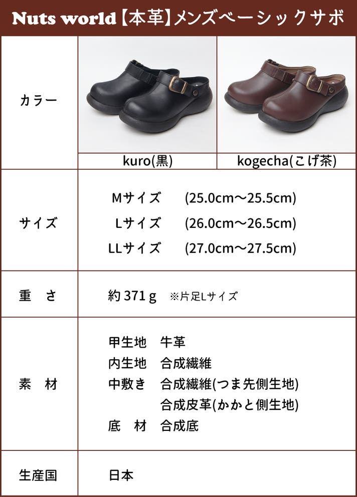 Nuts world 本革メンズベーシックサボ kuro-LL×1足