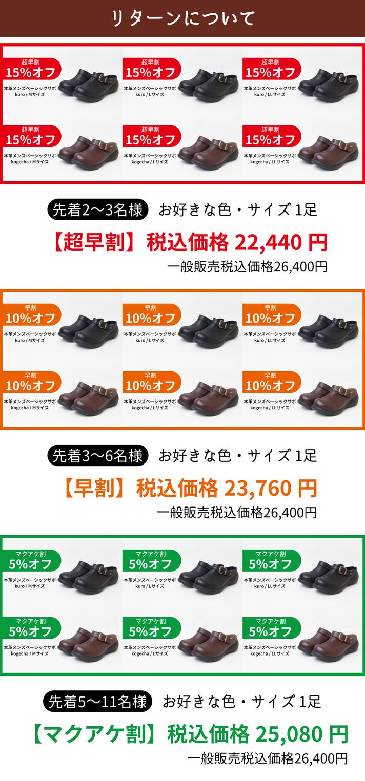 【マクアケ割】Nuts world紳士本革ベーシックサボこげ茶-LL限定5足