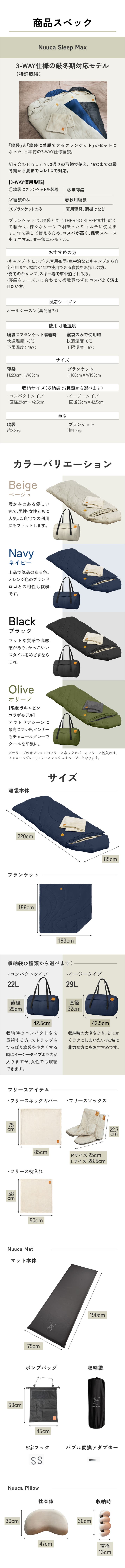 【お届け】Nuuca Sleep Max 寝袋【ベージュ】×1個+Nuuca Mat(75cm)×1個