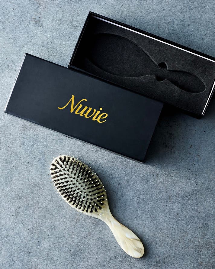 A.Nuvieは天然猪毛を使用しており静電性があるため髪の広がりを抑えます。