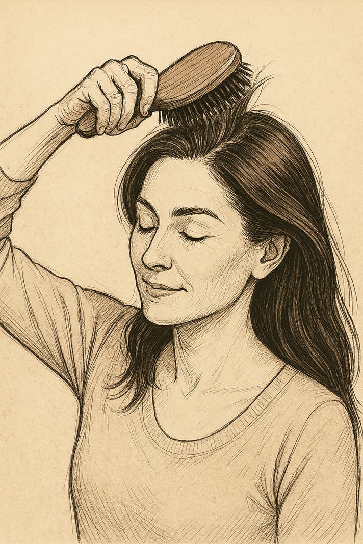 ブラシを地肌に軽くあて、前から後ろへ頭皮に逆らってブラッシングします。