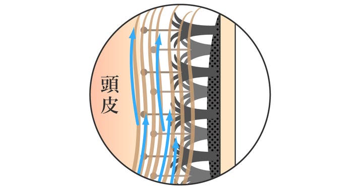 頭皮や髪への圧を均等に分散出来るブラシ構造と猪毛に含まれる油分を毛先まで優しく運べる配列に着目しました。