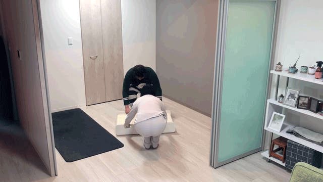 1人で展開する場合は、少し重い物をマットレスの上に支えとして置くと楽に展開が可能です。マットレス2枚分程予め敷き、残りはベッドを引っ張りながら敷く事も可能です。※シュリンクベッドに直接重りを乗せる事は避けてください。破損する可能性がございます。