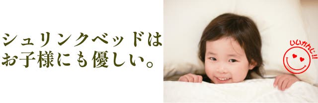 シュリンクベッドはロータイプのベッドとなっておりますので高い所からお子様が落下する恐れが無いためお子様にもとてもお勧めです!
