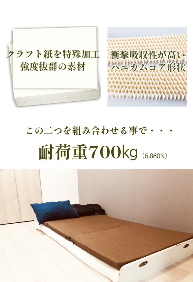 A.マットレスを敷いた状態で総重量700kg(6,860N)までとなります。