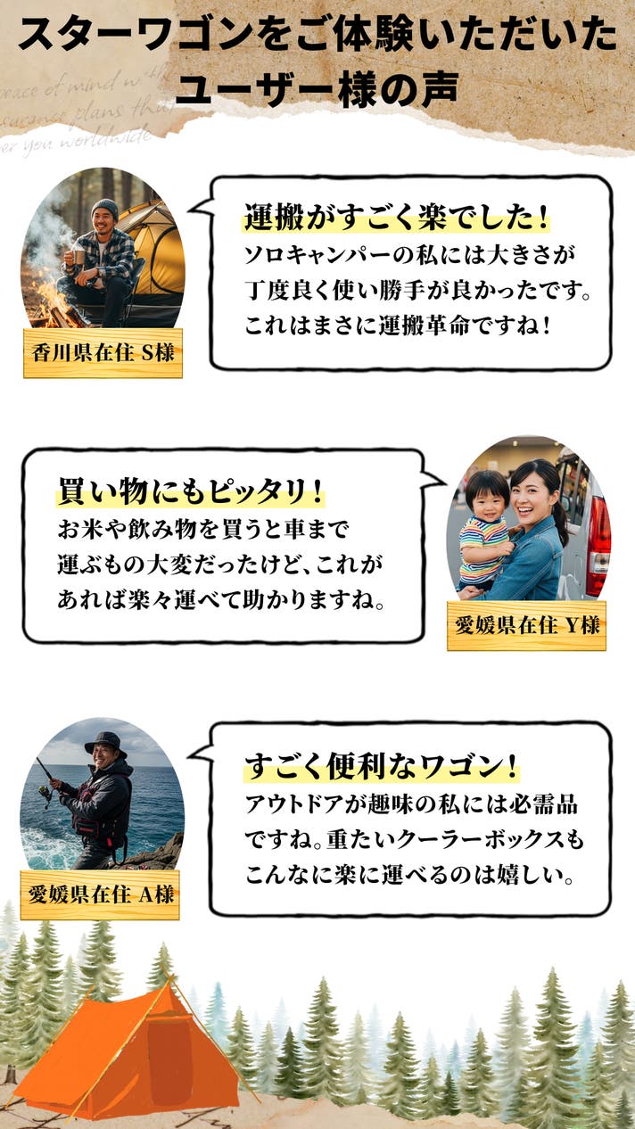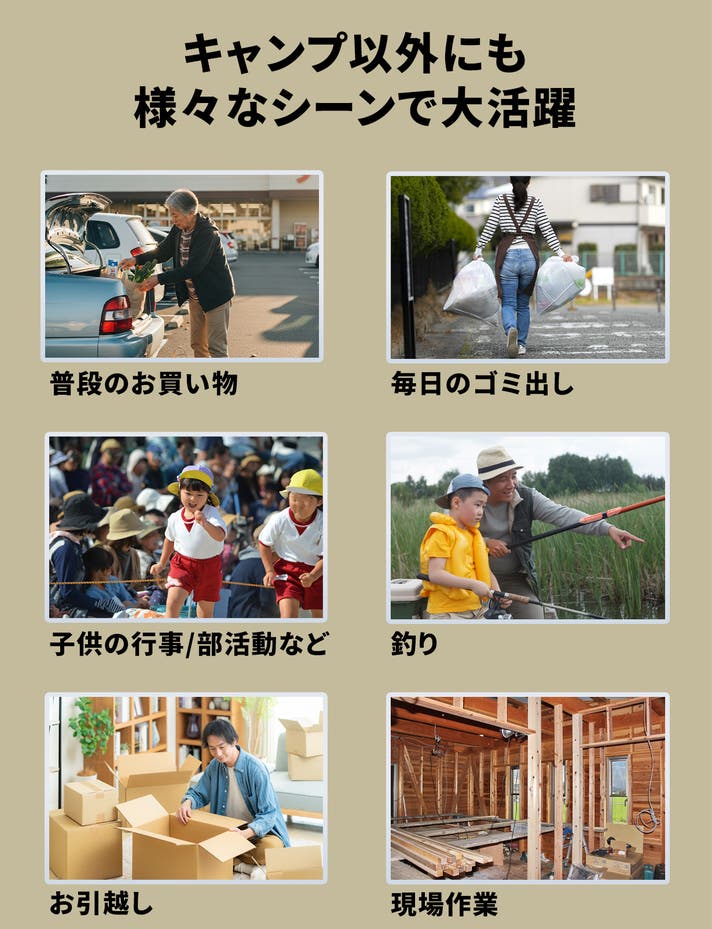 - アウトドア以外にも、普段の買い物や行事ごとなど様々シーンで大活躍!