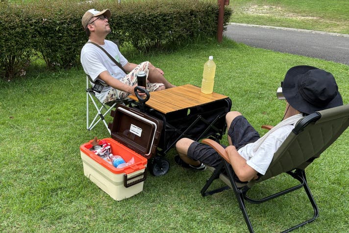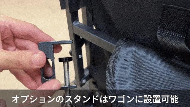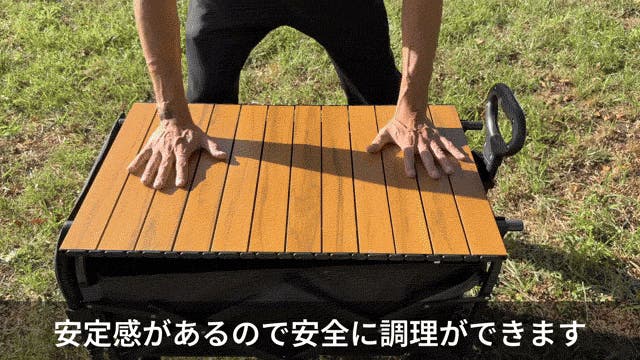 オプションの専用折り畳みテーブルがあれば、調理をしたりテーブルとしても利用が可能です。
